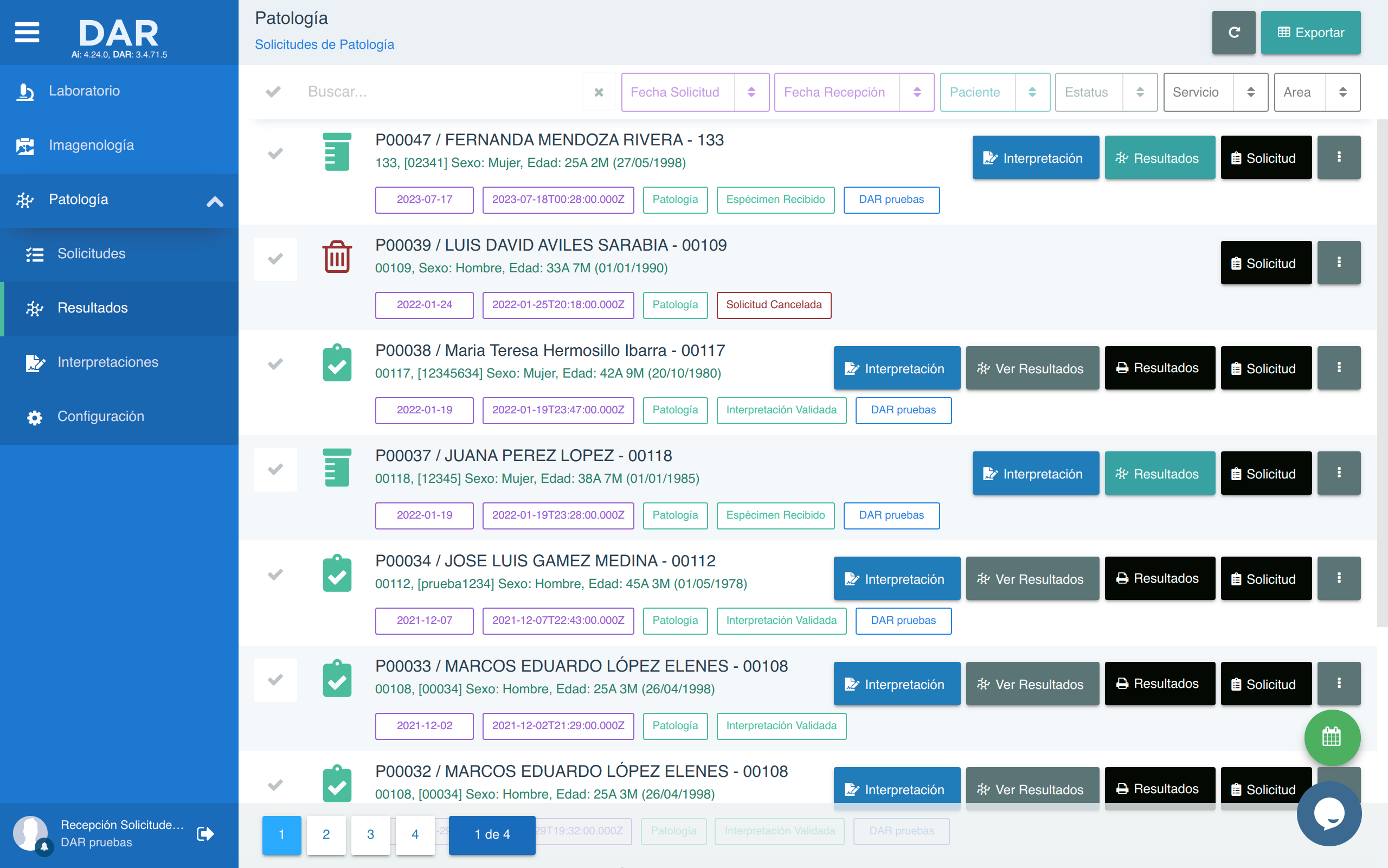 Lleve el control y seguimiento de solicitudes y resultados de patología.